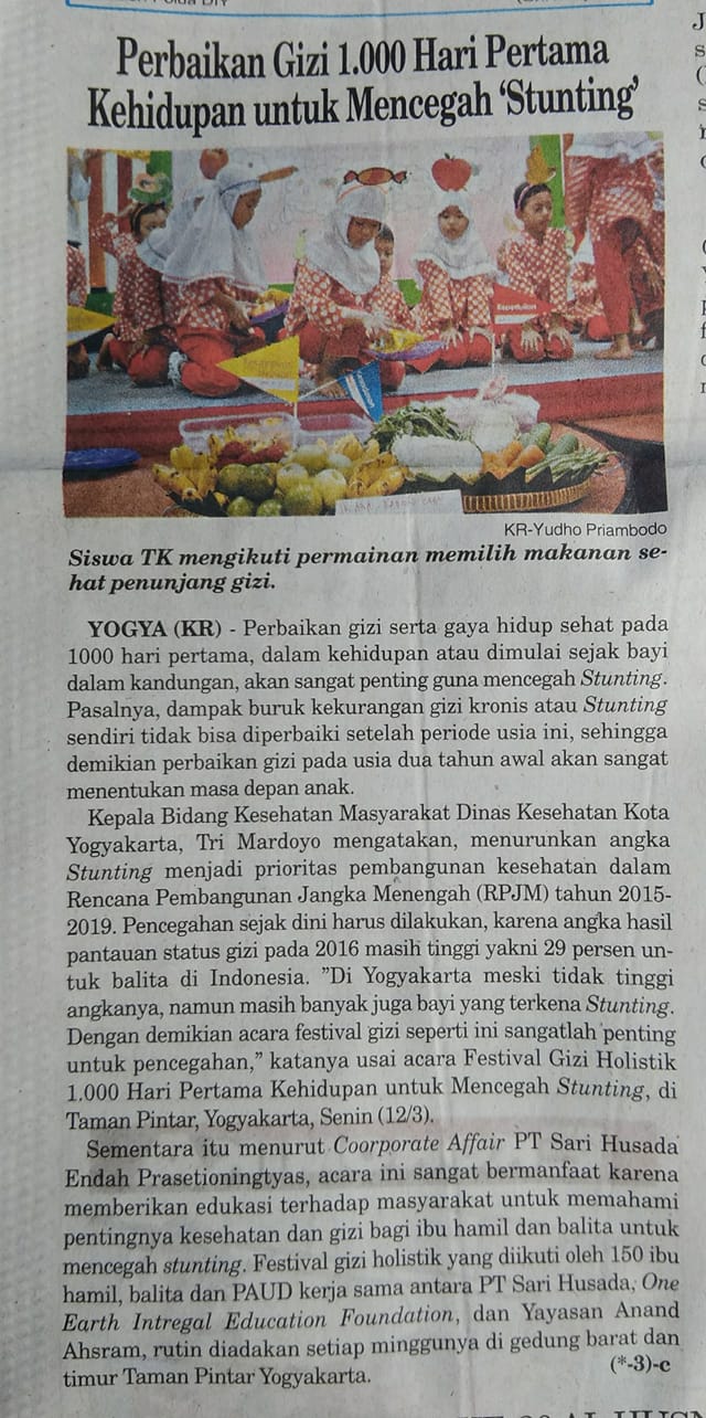2018 Edukasi Nutrisi SariHusada-One Earth “Bangunlah Jiwanya Bangunlah Badannya Untuk Kesejahteraan Dunia”