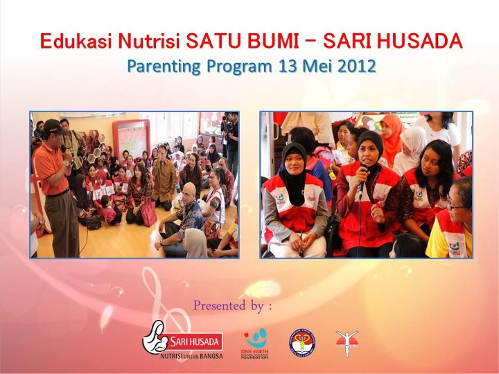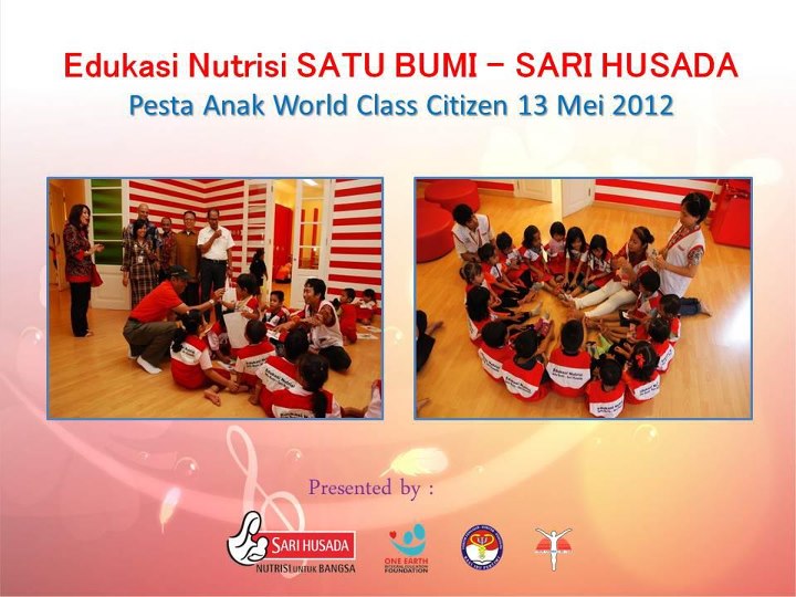 Baseline study merupakan bagian dari Study longitudinal untuk memonitor dan mengevaluasi pelaksanaan edukasi nutrisi satu bumi Sarihusada di taman pintar, enline studi pada orang yang sama dilakukan setelah 9 bulan berikutnya di bulan Desember 2012. Program Edukasi ini adalah upaya mendukung Indonesia mencapai Millenium Development Goals 2015 dalam bidang kesehatan dan turut berpartisipasi mengatasi permasalahan Gizi anak di Indonesia, sejak 23 Oktober 2011, diluncurkan program Edukasi Nutrisi Satu Bumi – Sari Husada yang dilakukan setiap hari Hari Minggu (pukul 09.30-10.30 dan 11.00-12.00) di Gedung Wahana PAUD Timur Taman Pintar. Dalam melaksanakan program ini P.T. Sari Husada bekerjasama dengan One Earth Integral Education Foundation, Forum Pengajar Dokter dan Psikolog bagi Ibu Pertiwi dan Forum Kebangkitan Jiwa. Kegiatan mencakup program edukasi nutrisi yang diperuntukkan bagi anak-anak melalui “Pesta anak” dan bagi orangtuanya melalui “Program Parenting”. Program bertujuan memberikan edukasi nutrisi secara integral pada orang tua dan anak untuk meningkatkan status gizi dan kesehatan fisik dan psikososial anak. Sejak dilaksanakan pada tanggal 23 Oktober 2011 sampai 1 Juli 2012, jumlah anak dan orang tua yang sudah dilayani mencapai 3.828 orang.
