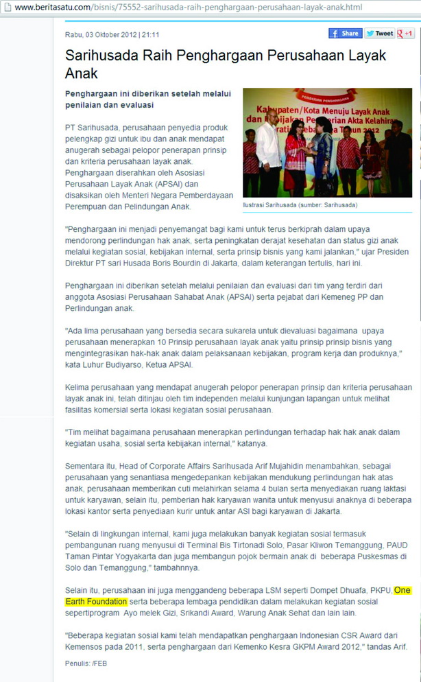 admin108 July 1, 2013July 1, 2013 Sumber berita : http://www.beritasatu.com/bisnis/75552-sarihusada-raih-penghargaan-perusahaan-layak-anak.html